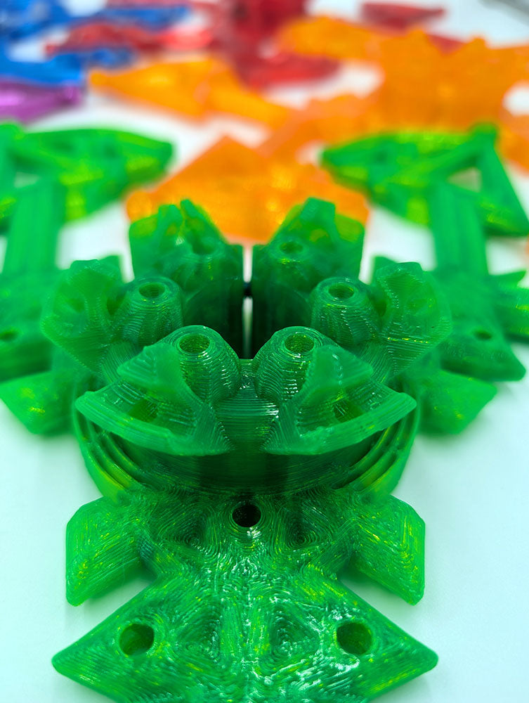 Understaff3D Dragon Heads are the worlds first 2nd Generation Dragons. This means that they not only fit on all common flow prop shaft sizes while needing NO tools for assembly/disassembly, but can also change their weight and roll inertia by taking on many shapes, while also still accepting addons like glowsticks and silks in a Lego-Like Fashion!